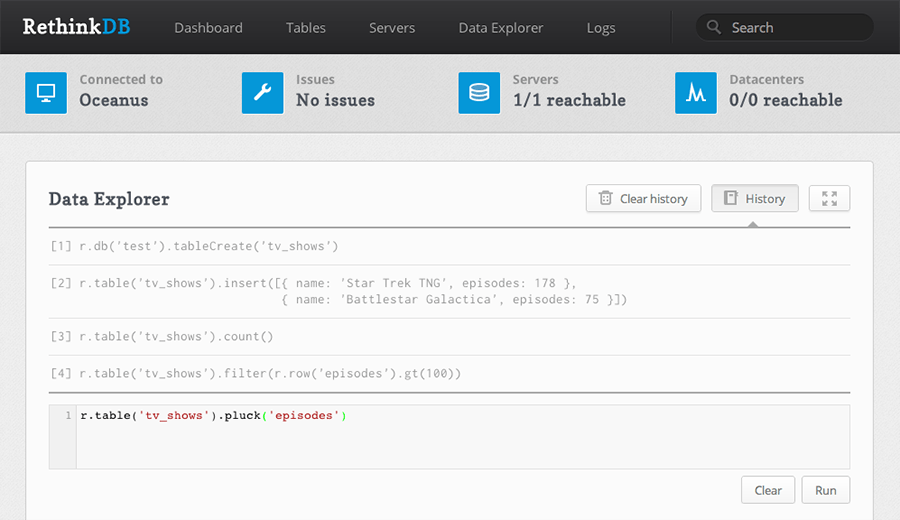 RethinkDB 1.4: improved wire protocol, updated drivers, data explorer history
