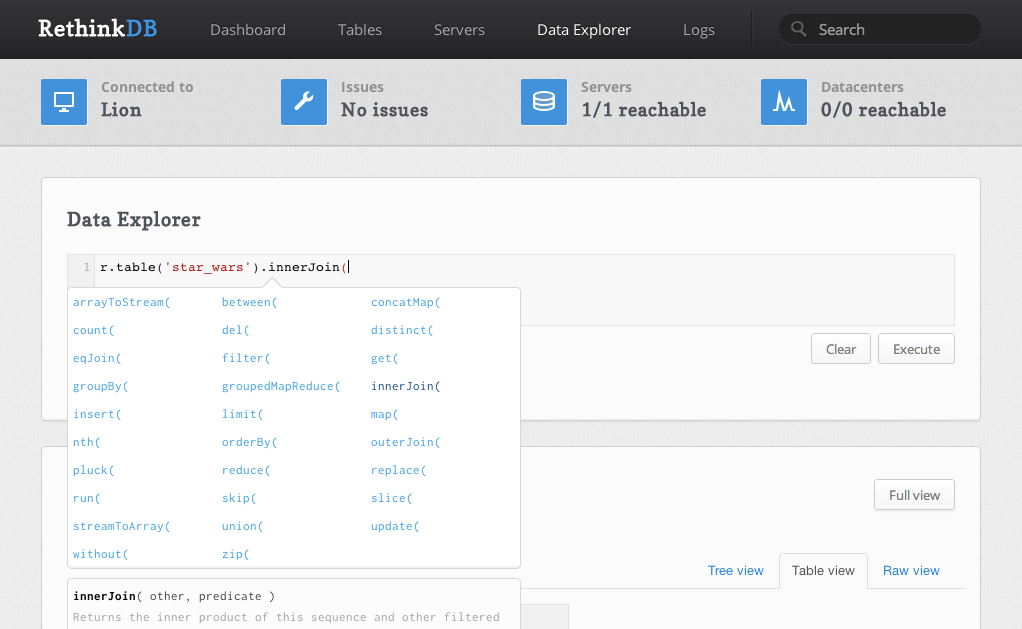That’s not to say that ReQL is complete. There are more features and operations that we’re constantly adding to the query language.